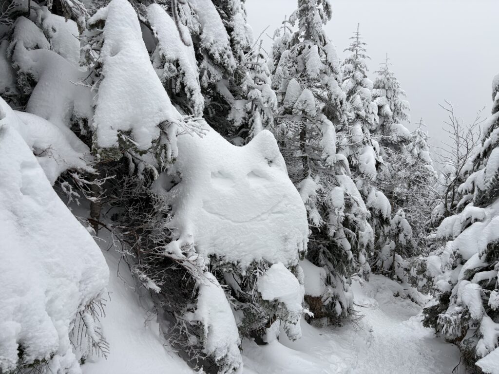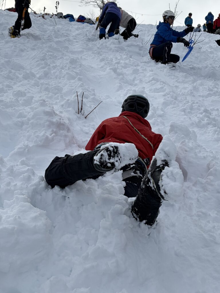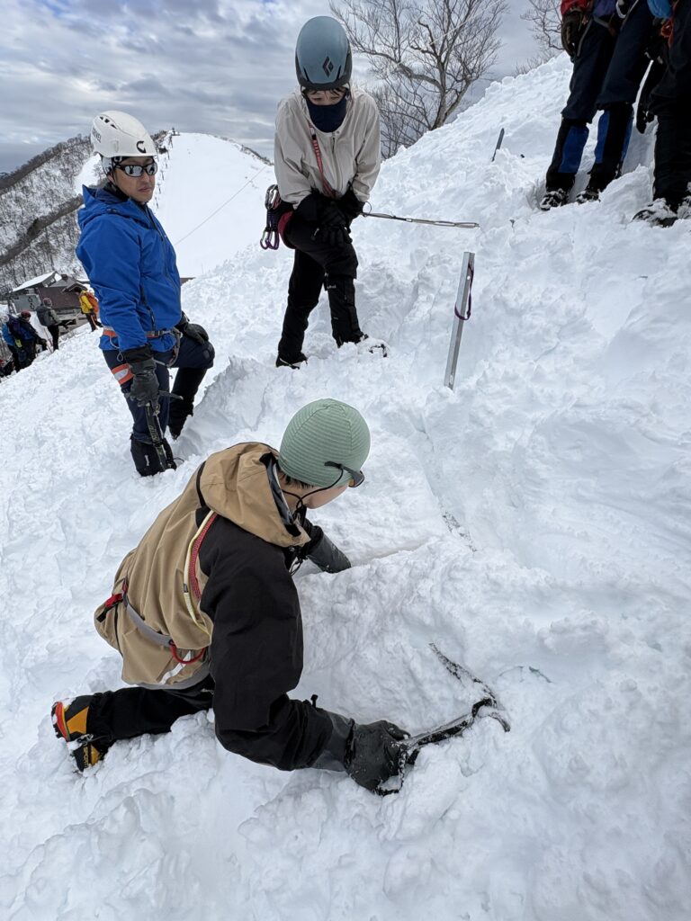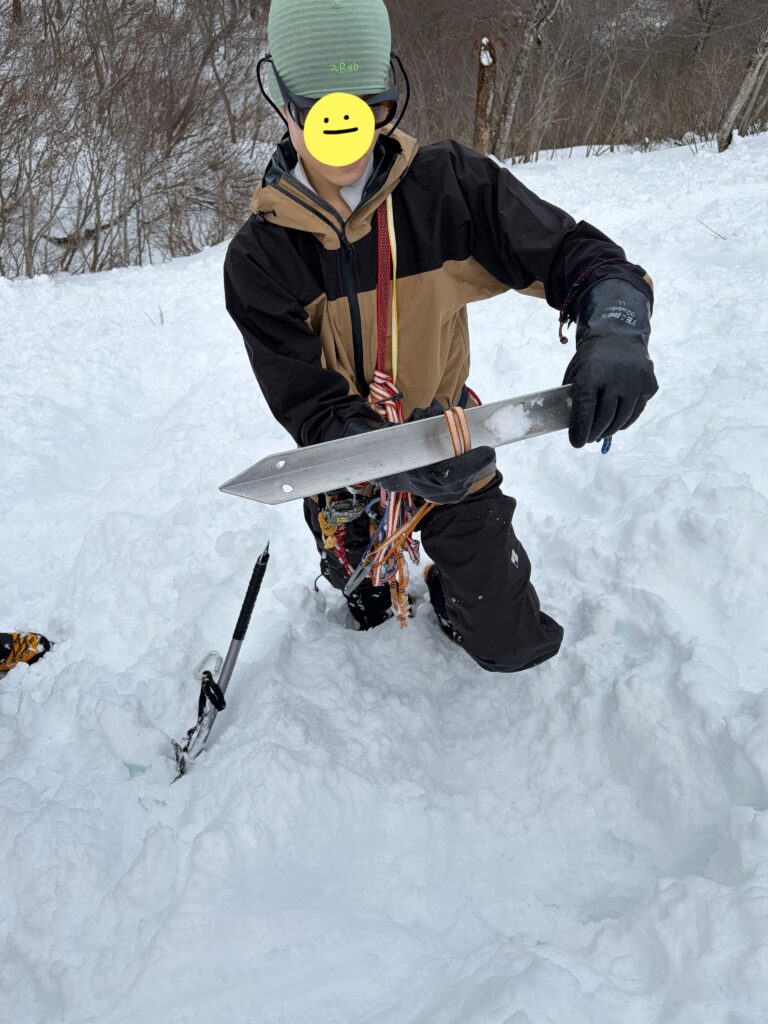 1日目と違い、尾根は細くなり、樹木の上を縫うように歩くラッセルが続きます。変なところを歩くと雪を崩して滑落してしまいそうな気がしてルーファイに悩み、先輩方にアドバイスをいただきながら進みました。