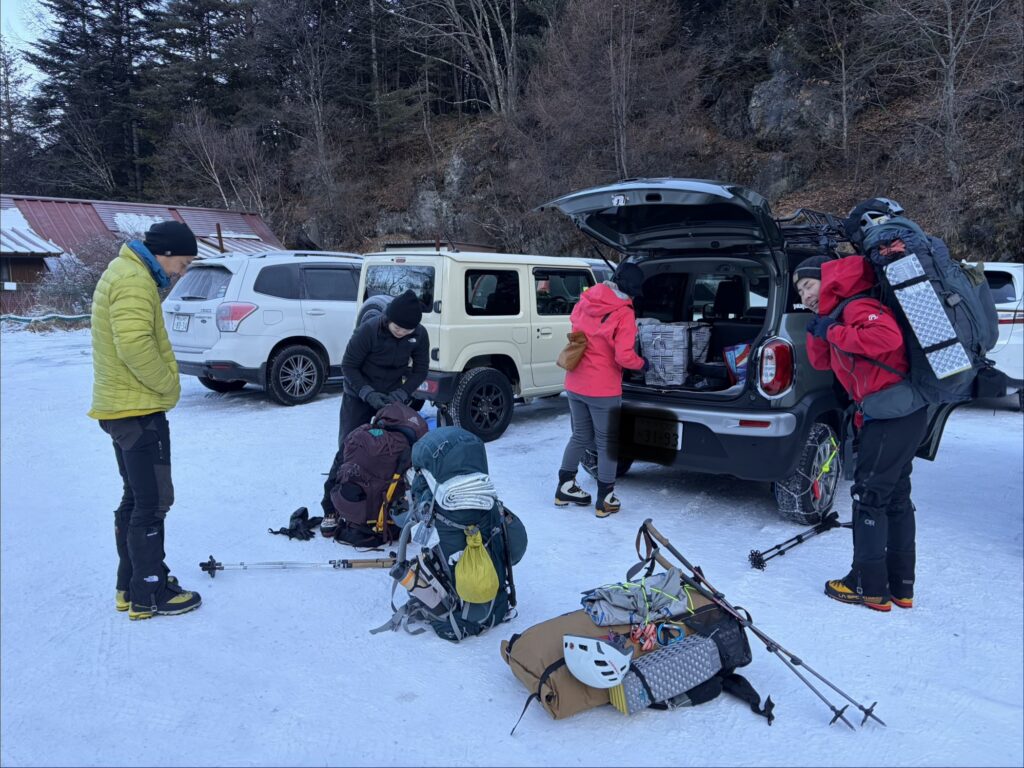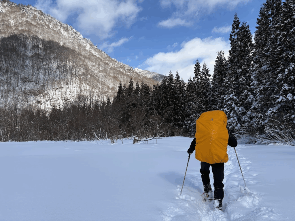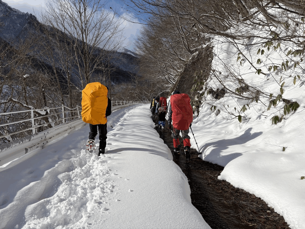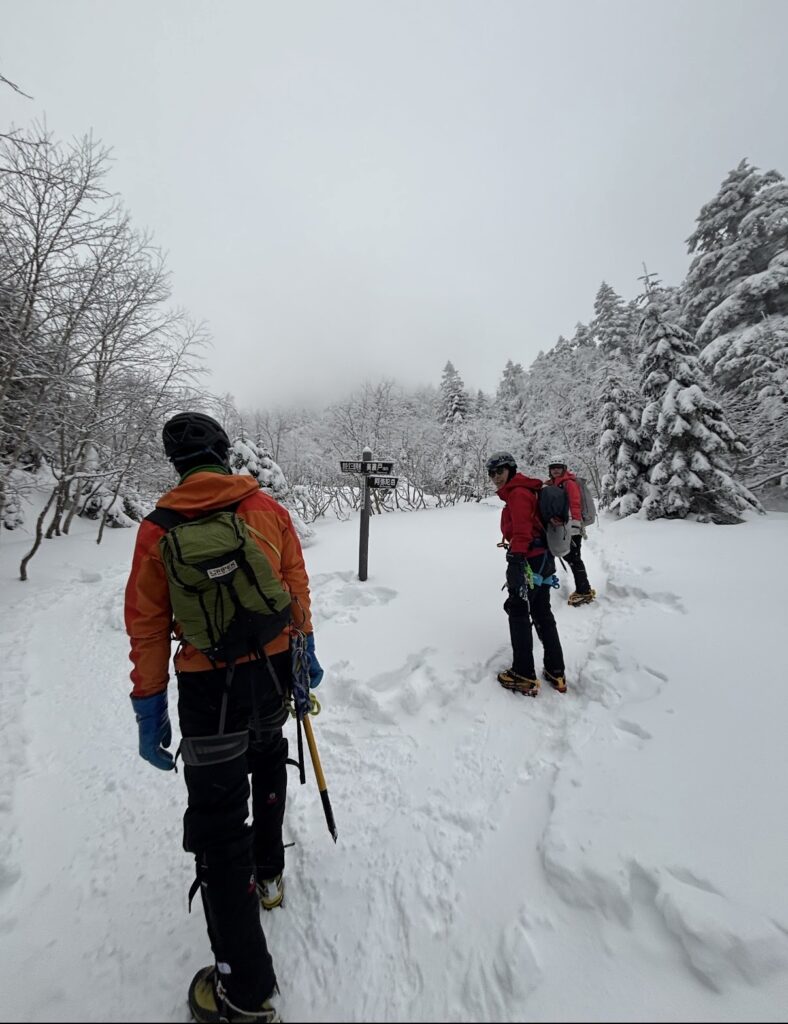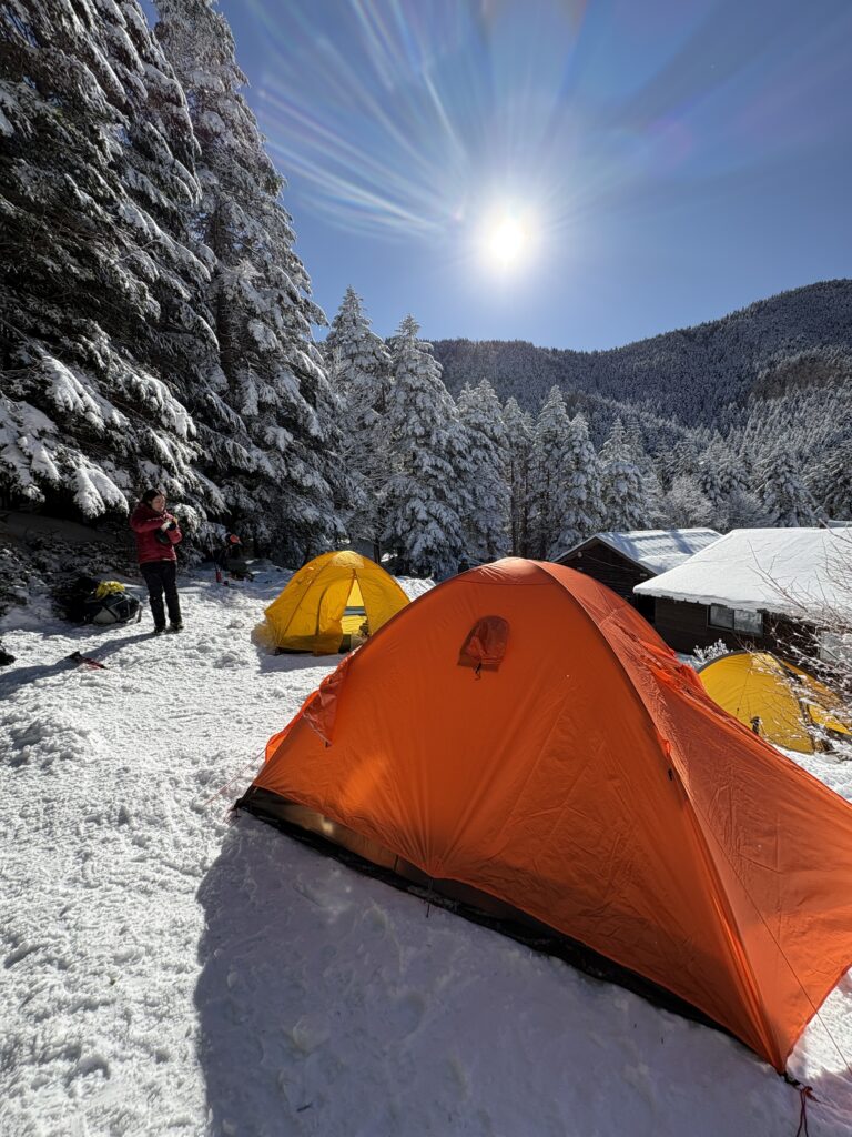 テント撤収後は深い雪に沈んで怪我をしないようにとゆっくりめに下山しましたが、それでもあの苦労はなんだったのだろうかと驚くような速さ。途中でソロで上がってきたお兄さんとスライドしたため、ラッセル頑張ってくださいと半ば野次のようなエールを送り見送りました。