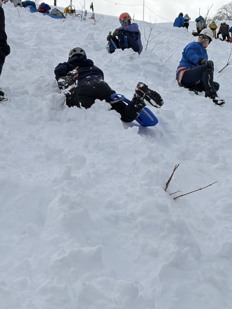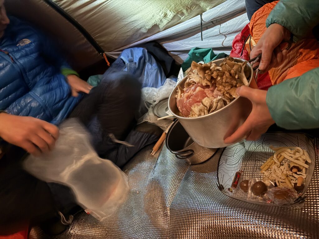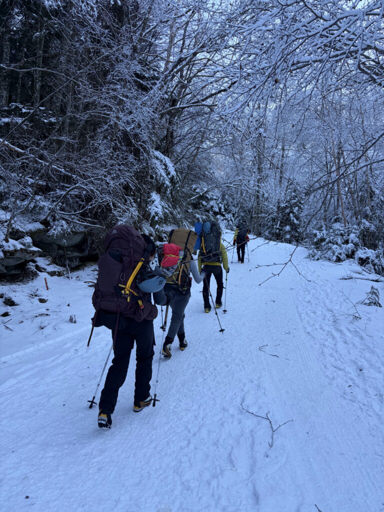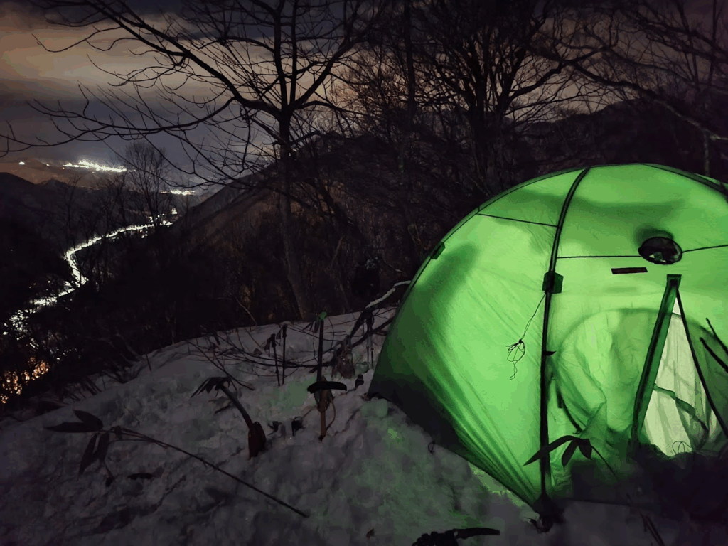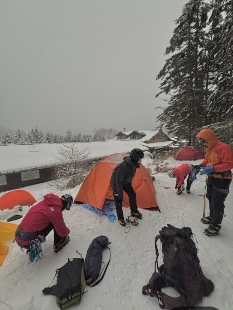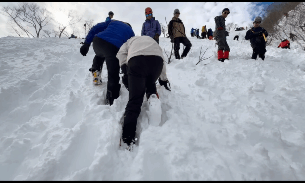 テント撤収後は深い雪に沈んで怪我をしないようにとゆっくりめに下山しましたが、それでもあの苦労はなんだったのだろうかと驚くような速さ。途中でソロで上がってきたお兄さんとスライドしたため、ラッセル頑張ってくださいと半ば野次のようなエールを送り見送りました。