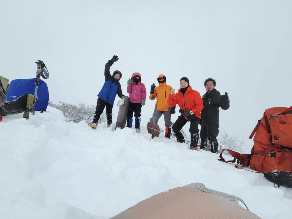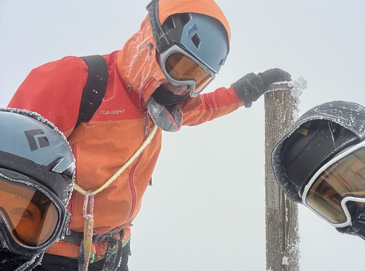 最後の山頂直下の斜面はここまでで1番の急登でしたが、先頭をラッセルしてくれたI澤さんが早い早い……!!先頭を代わろうと慌てて追いかけましたが、まったく追いつけずに矢場の頭に到着しました。