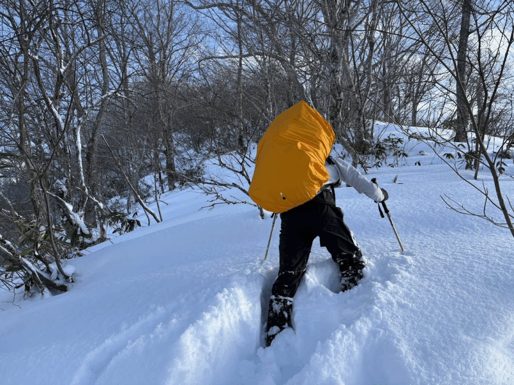 ようやく山に入り、本格的なラッセルがスタートします。