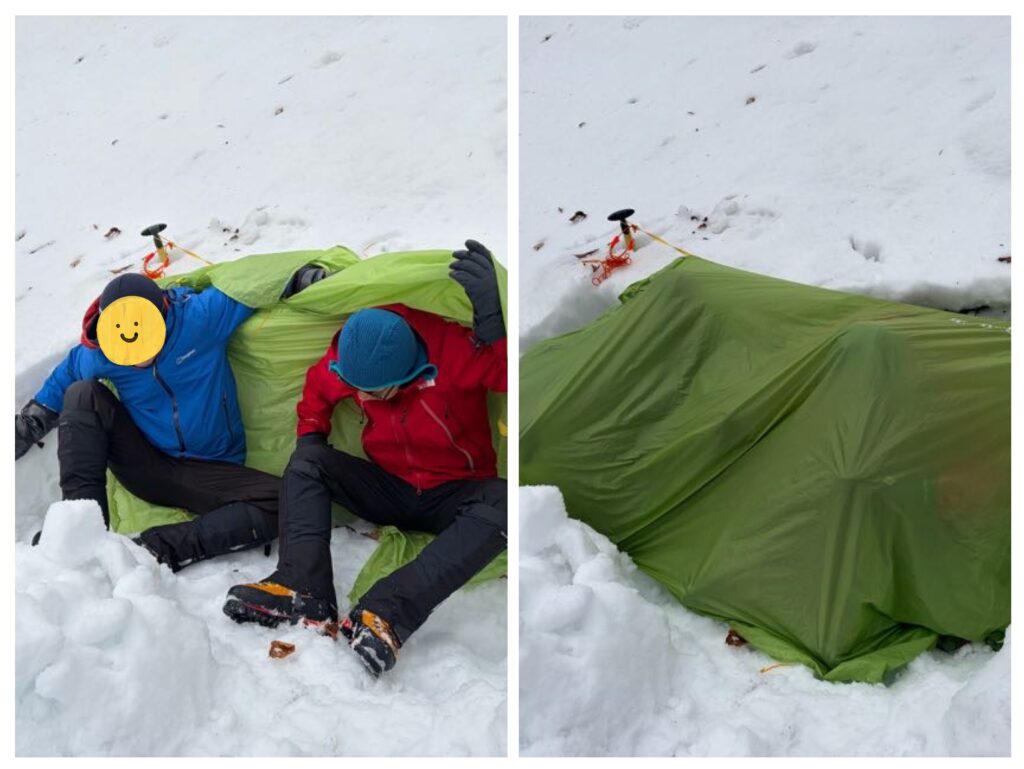 天候悪化、怪我、体調不良など一時的にでもビバークが必要な状況になった時に、慌てずスムーズに出来るようにしっかりと身に付けておきます。
